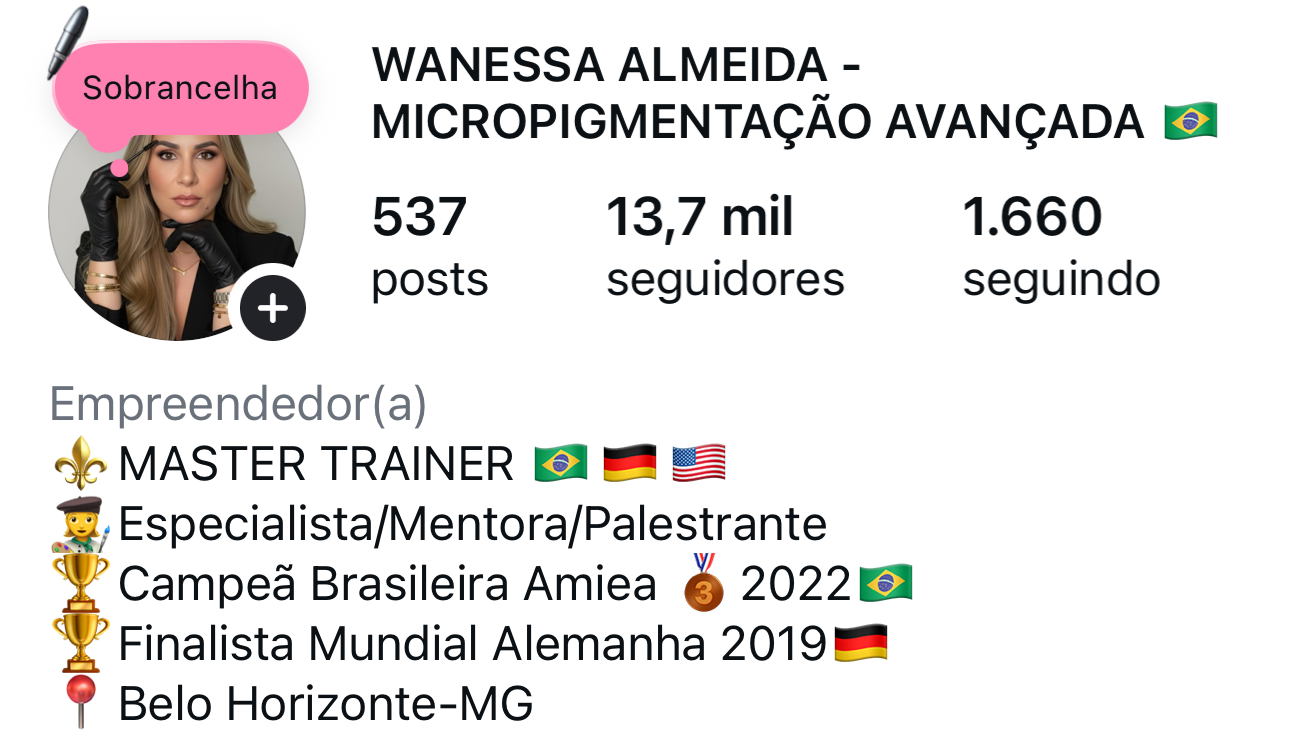 Designer de Sobrancelhas e Micropigmentadora com mais de 9 anos de experiência, atuando no Brasil e Exterior!